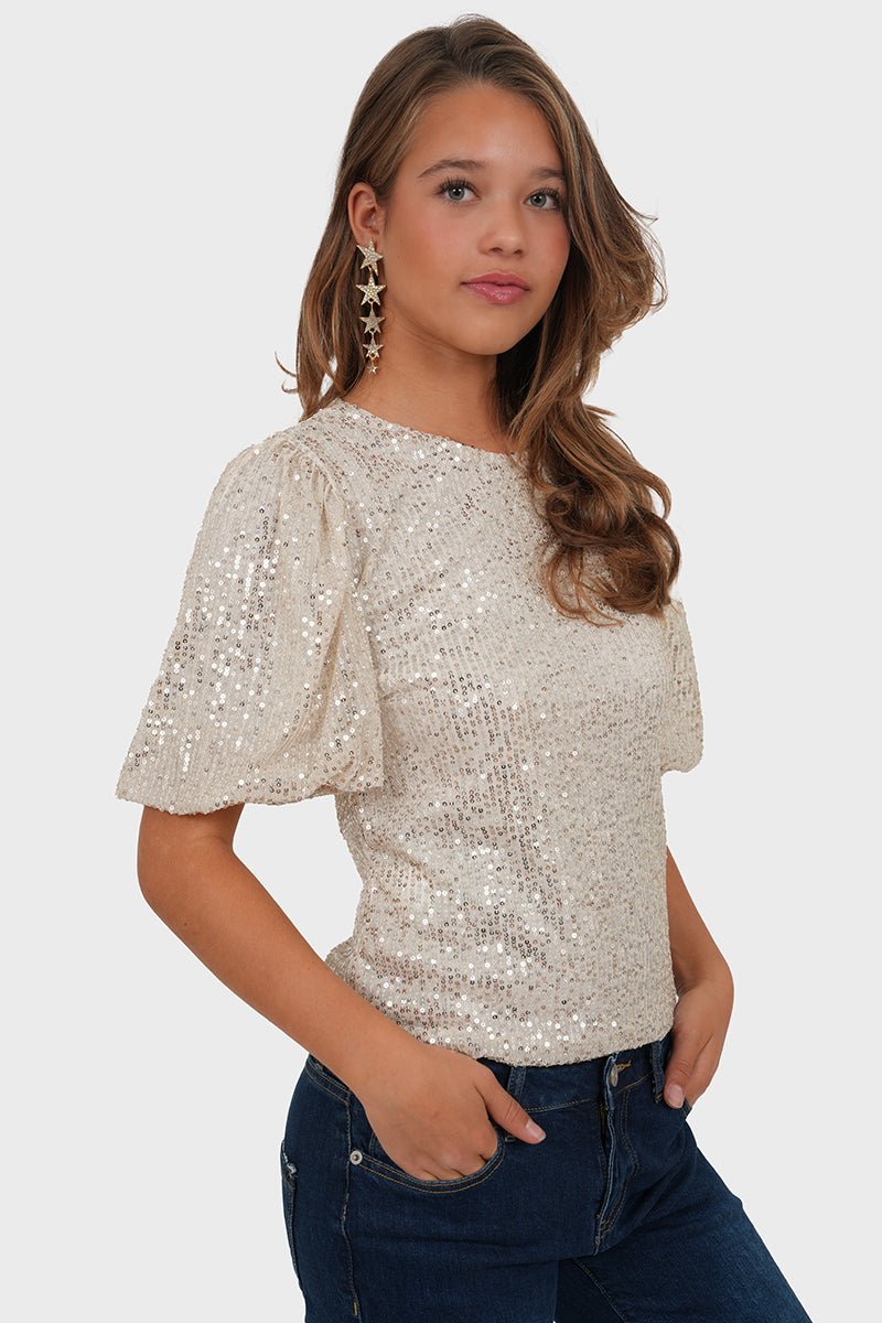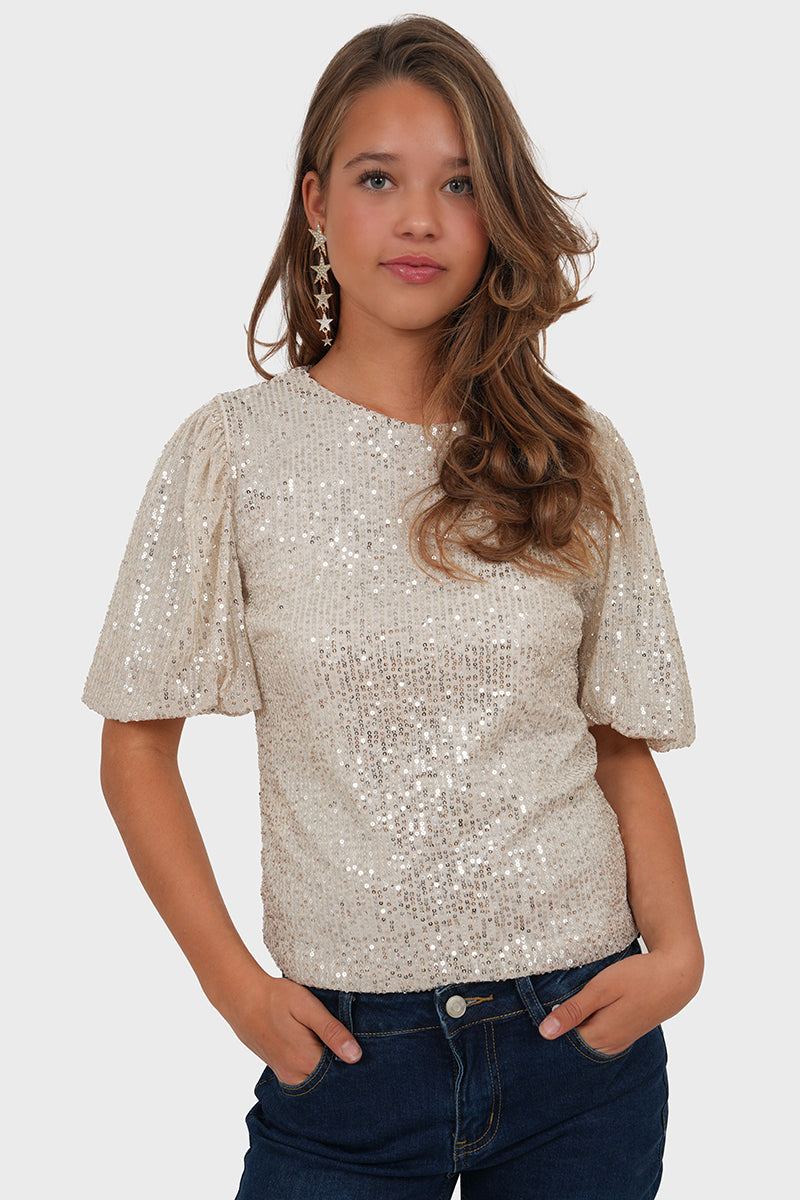 Get ready for the party season! 🪩 Deze glittertop met pofmouwen is een echte musthave. De pailletten zorgen voor een shiny effect en de pofmouwen geven een super leuke touch. ✨ Perfect om te combineren op een jeans voor een complete look!