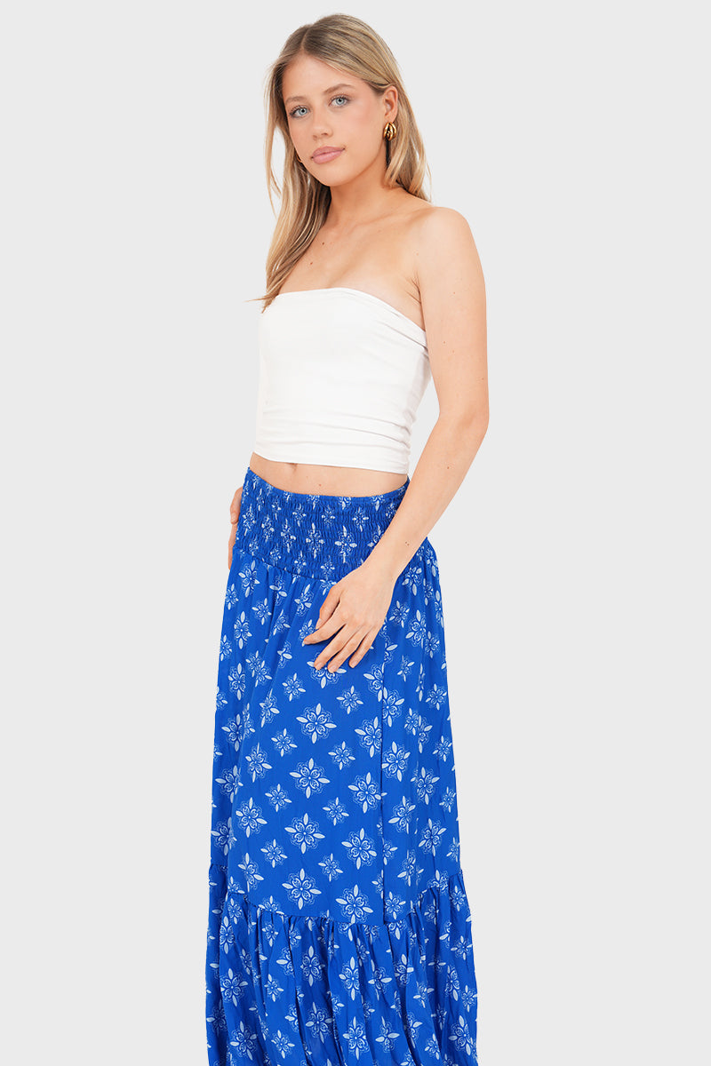 This maxi skirt is a true summer essential 🌸 Thanks to the stretchy waistband, the skirt fits super comfortably. Available in a variety of fun colors and prints, so you can mix and match endlessly. Wear the skirt with a tube top or tank top and pair with flip flops or sandals for a summery look.