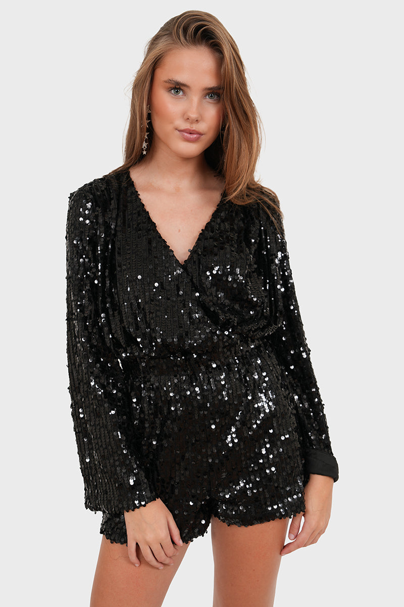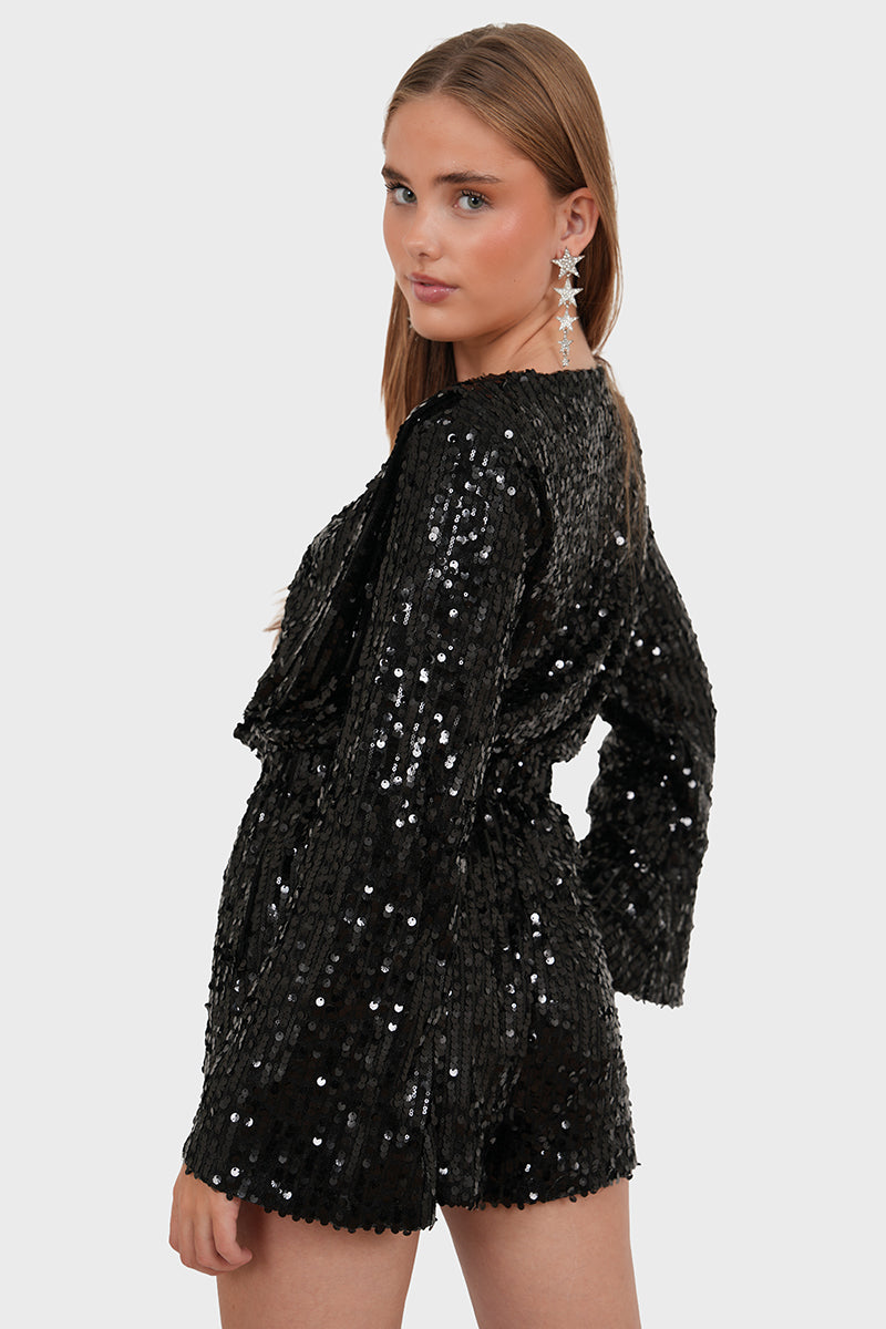 Get ready for the party season! 🪩 Deze zwarte glitter playsuit is dé eyecatcher voor jouw party look! ✨ De V-hals en lange mouwen zorgen voor een super mooie fit. Met de super mooie pailletten is dit jouw perfecte party outfit!