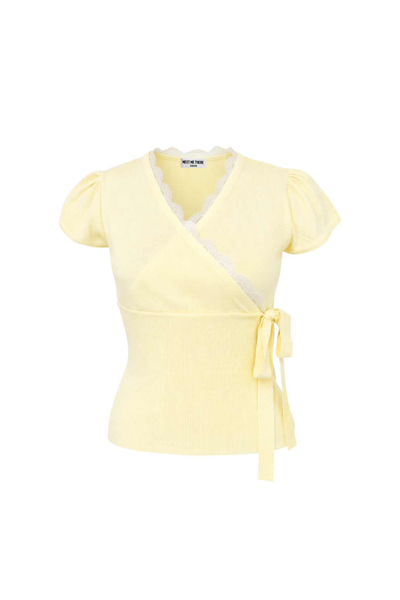 Ce top jaune pâle est parfait pour tous les jours. Le cache-cœur avec un détail noué sur le côté offre une belle coupe et une touche féminine. La bordure en dentelle le long du col et les manches bouffantes le rendent encore plus mignon. Confectionné dans un tissu doux et extensible, il est super confortable. Facile à assortir et disponible en plusieurs couleurs !