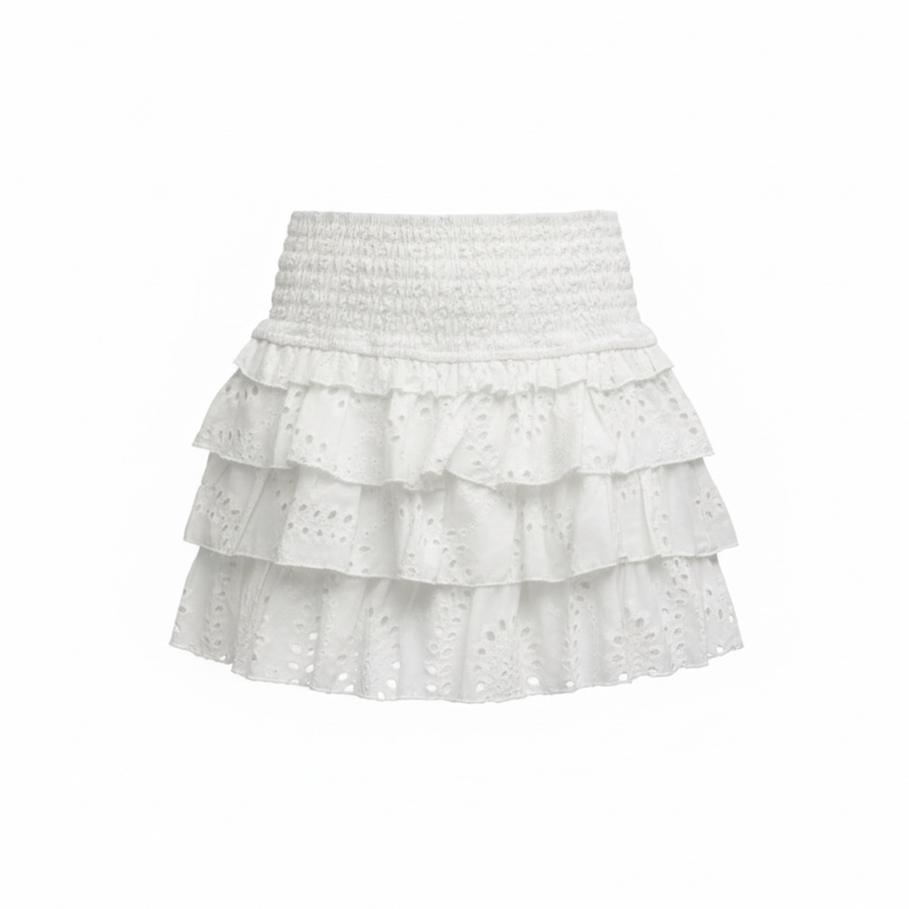 Gemaakt van een stevige, mooie broderie stof met een comfortabele stretch tailleband die perfect aansluit. Het rokje heeft een ingebouwd broekje voor extra draagcomfort.